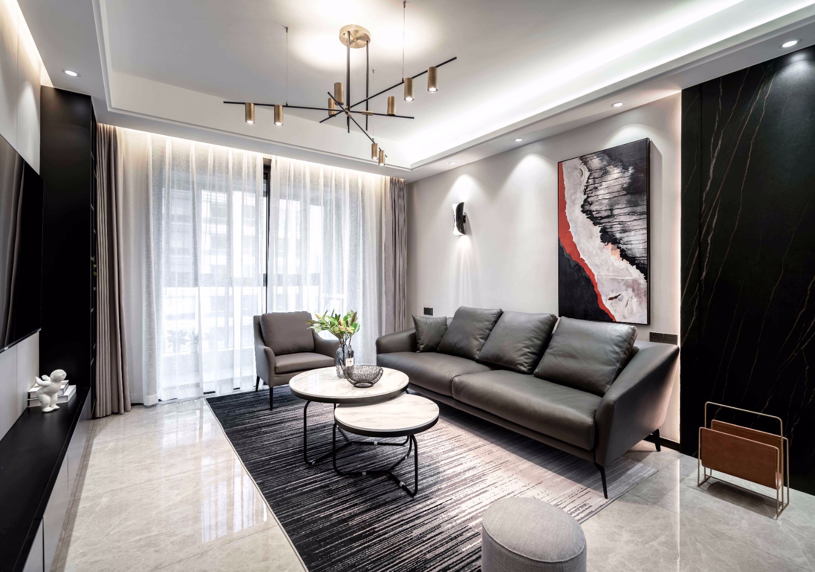 客厅摒弃了传统冗杂的摆设,在视觉效果上就会显得比较通透