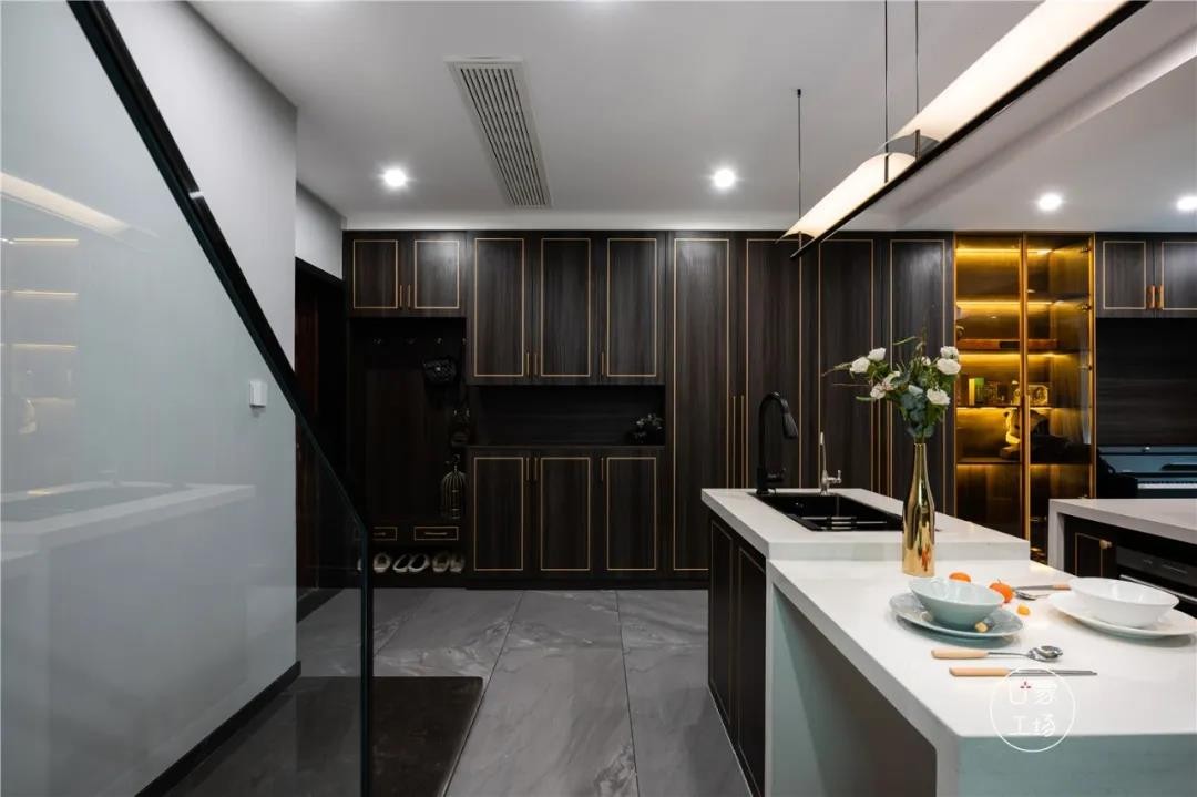 从事房地产行业的陈女士,见过太多装修模板,更希望这套loft公寓,能真正从美观、功能等各方面,都服务于她个人的居家需求,享受专属私人空间的舒适惬意。因此,设计师陈民召在与业主深度交流后,拟定轻奢风格作为主基调,并拆掉大量墙体,重做布局,同时使用灰/茶/金配色,搭配金属、玻璃等元素,运用智能系统,量身打造出轻奢现代的loft理想家。