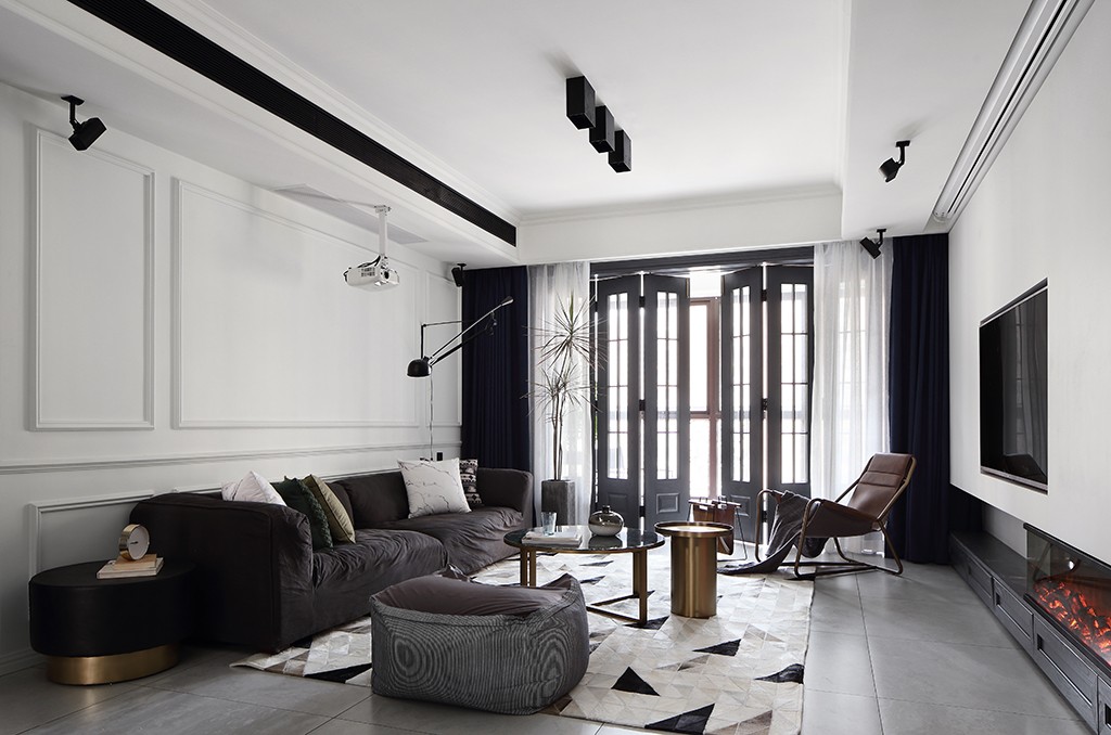 客厅的设计风格将不同设计元素完美的融合在一起,茶几偏北欧轻奢、阳台门又偏新中式