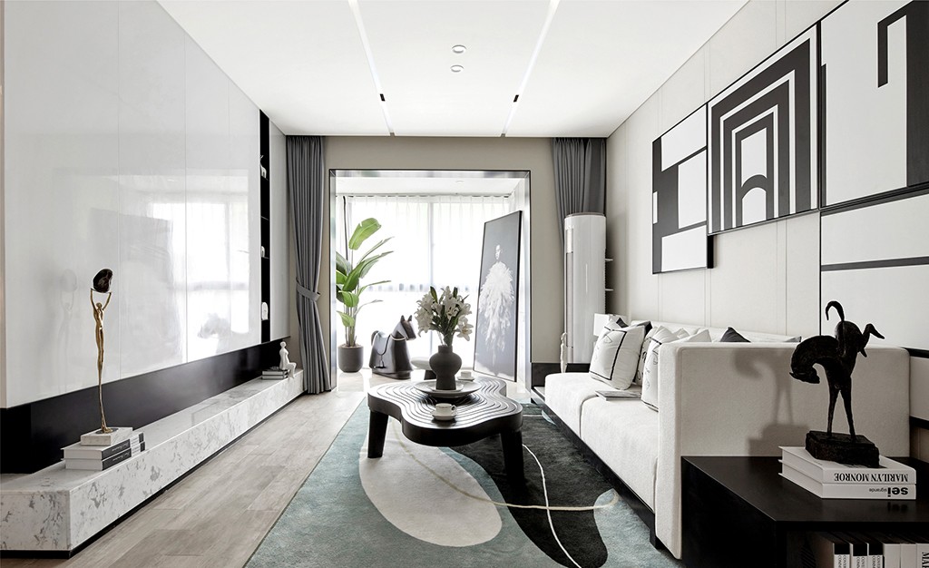 客厅的配色是黑白搭配