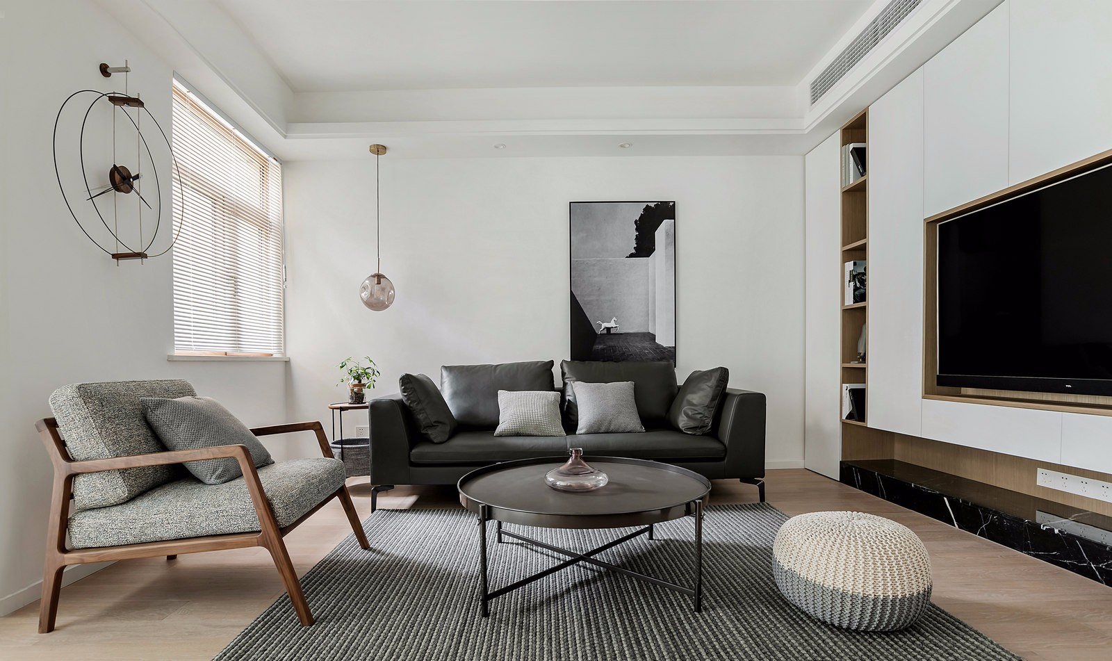 中小户型,首要解决收纳问题,所以设计了储藏式电视柜背景墙,延伸整面墙的储藏柜,加上卧室和其他空间的储藏柜,彻底解决收纳困扰。