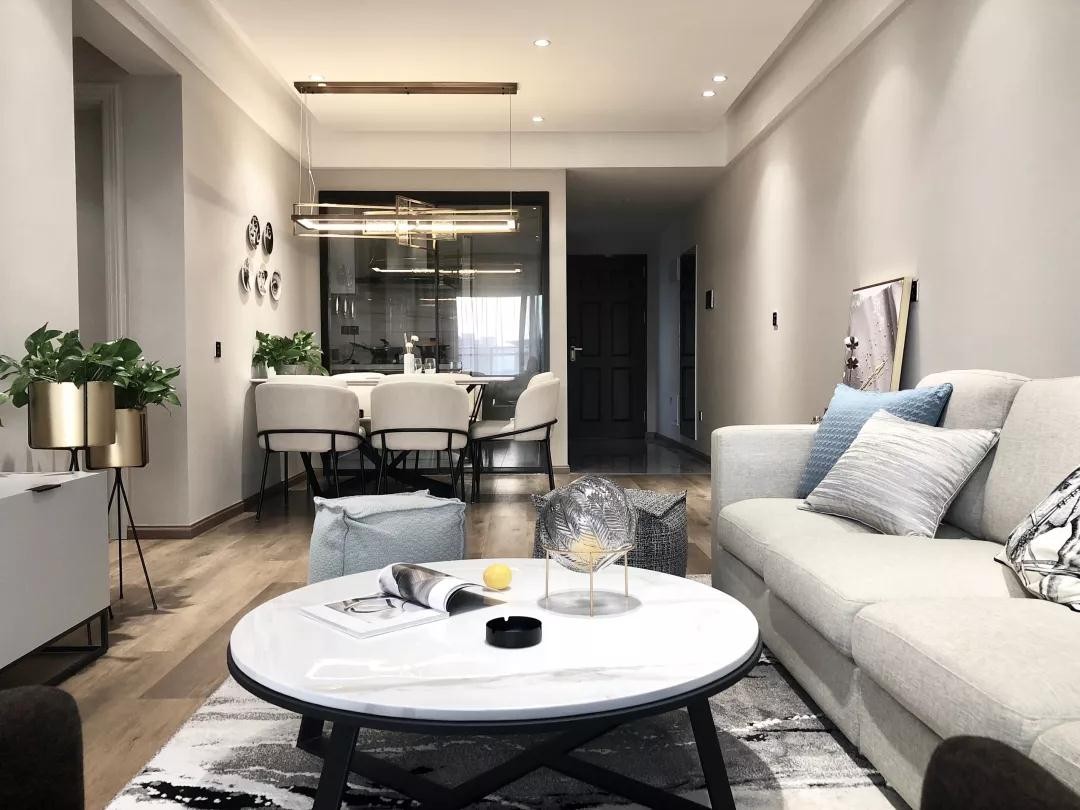 面积112平米的轻奢风三居室,整个家的配色以浅灰色为主,在现代简洁的硬装基础上,加入创意的灯饰和装饰,让整个家看起来更有格调,通过这些软装的点缀,也让这个家多出了轻奢风的感觉。