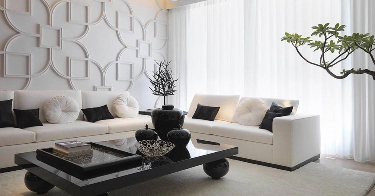 客厅整体设计以黑白色调为主。整体空间大气美观。