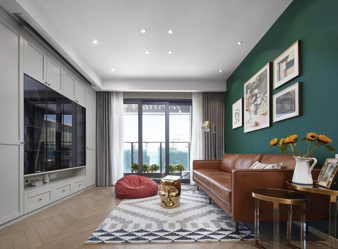 这一次我们打破传统,使用人脸金属小凳子代替茶几,空间自由随意,我的家由我来做主。