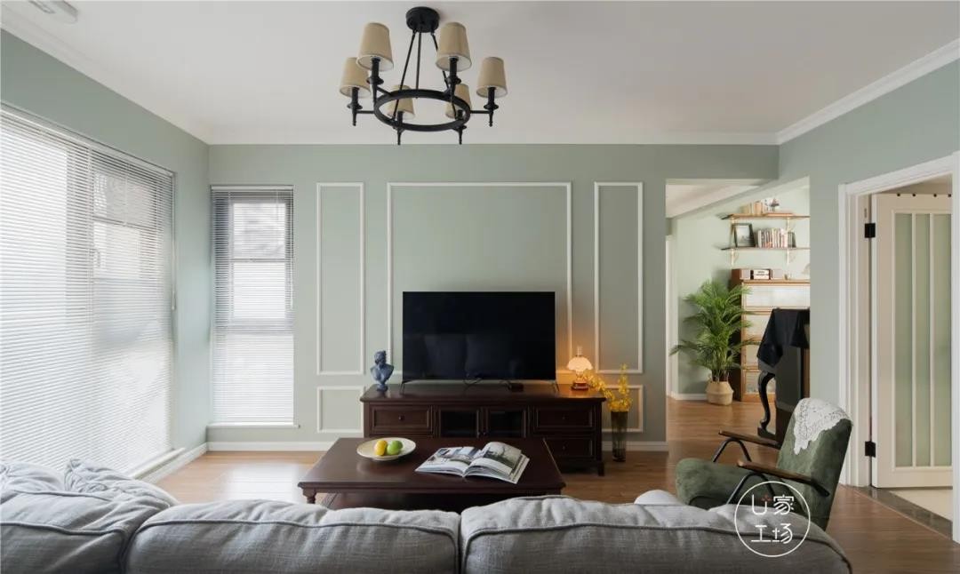 眺向客厅,视线顿时被满屏清爽的明绿色所吸引,一改美式带给我们的厚重印象。