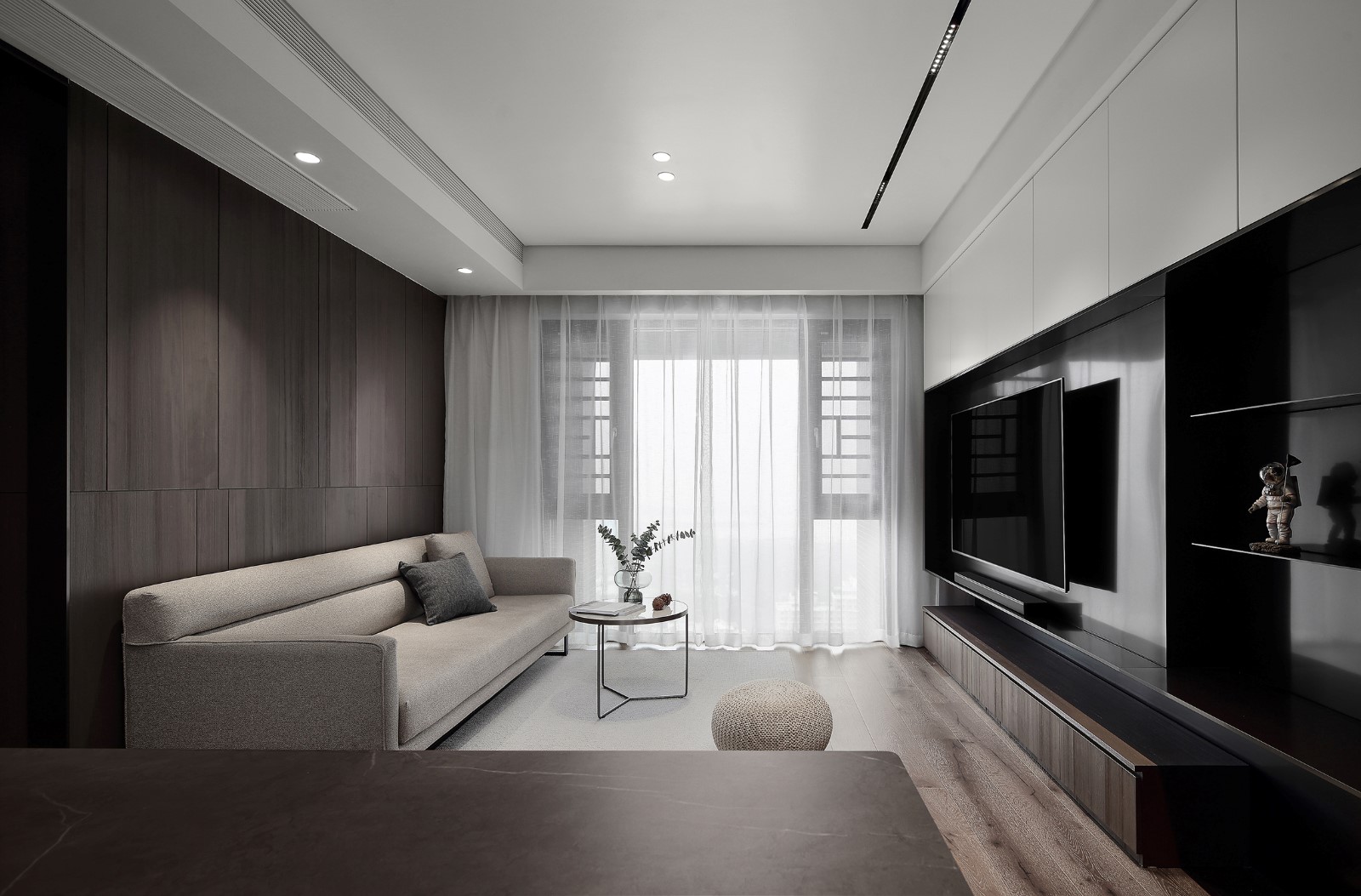 沙发背景墙用木色的免漆KD板,铺垫出全房的简约基调,干净环保。茶几选择最简单的款式,小巧大方,提升客厅的通透性,同时也容易挪动,给爱动的小朋友腾出一片空地来玩耍。