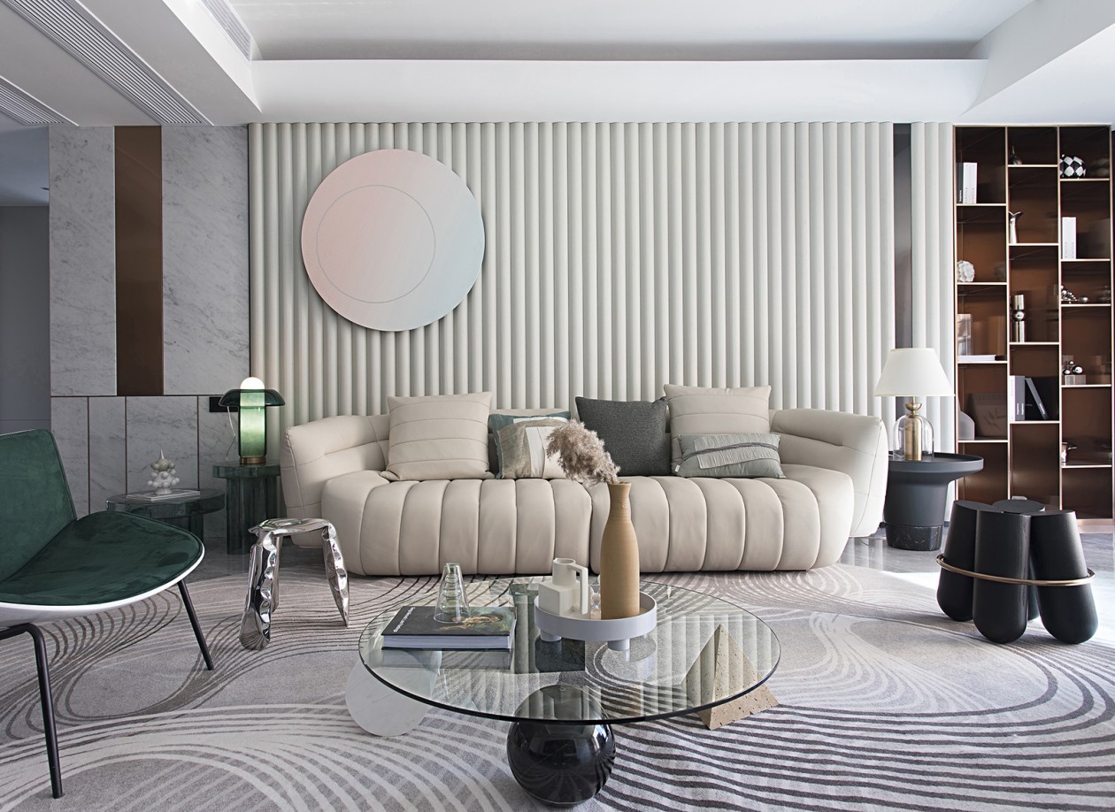 极具设计感的圆几丰富空间层次感的同时完美延续澄净的风格,兴之所起时席地而坐,心思随着绒花飞向远方,集功能与美学于一身的休憩空间让四季开始变得悠长。