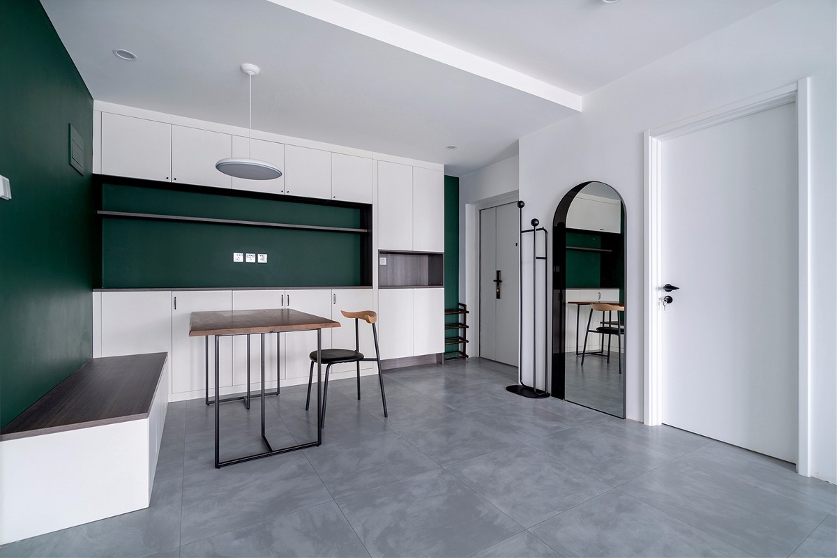 深色的墙漆有种魔力,可以把空间变的更有纵深感,相比大面积白色其实局部加入一些深色更有效果。
