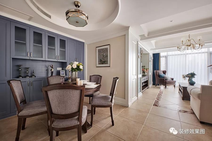 餐厅,雾霾蓝餐边柜的点缀,为用餐环境注入轻盈***感。