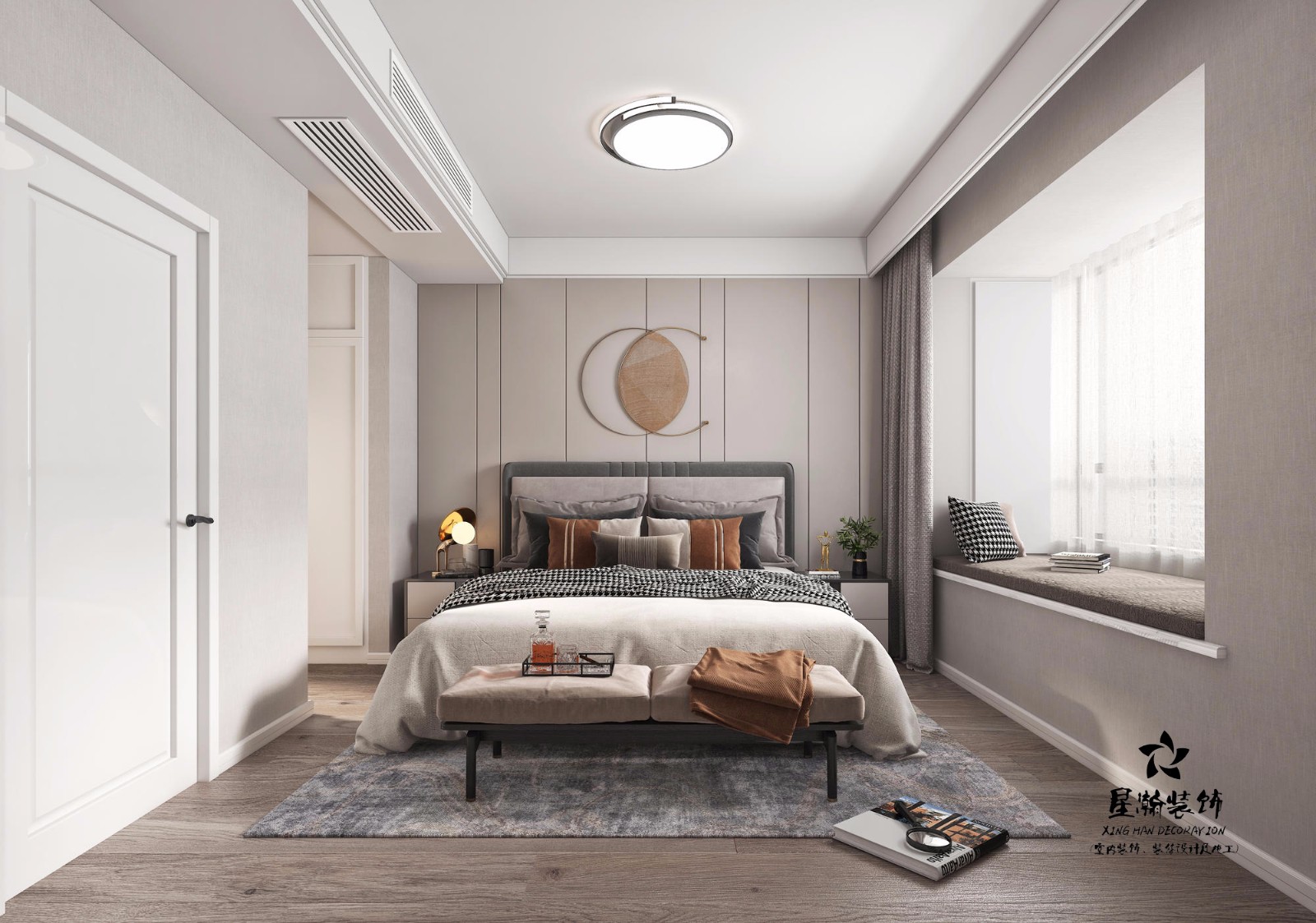 卧室采用温馨的暖咖色调,呼应客餐厅的同时,又不失卧室的温馨舒适