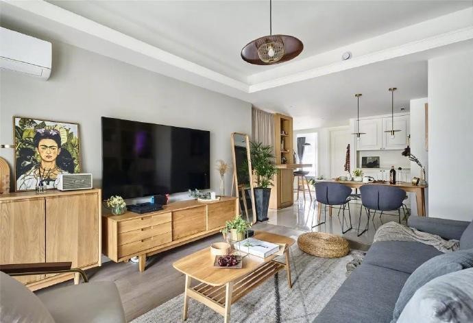 真题多采用原木家具,清新自然,电视墙简洁的墙面基础,布置上精致的小绿植细节装饰,也是让空间显得更加端庄惬意。