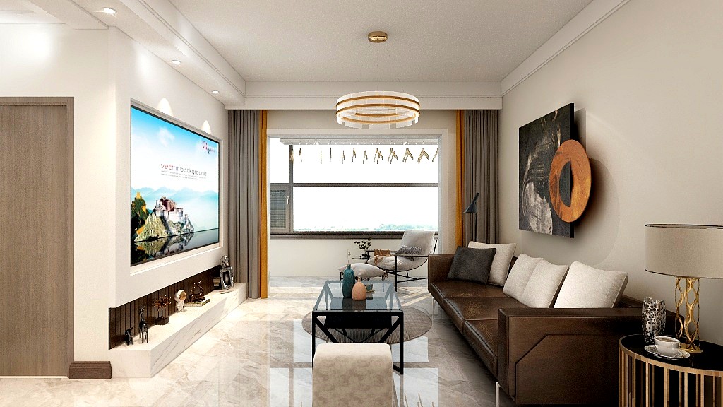 背景墙采用投影设计,省掉繁杂的电视背景墙用投影幕布替代