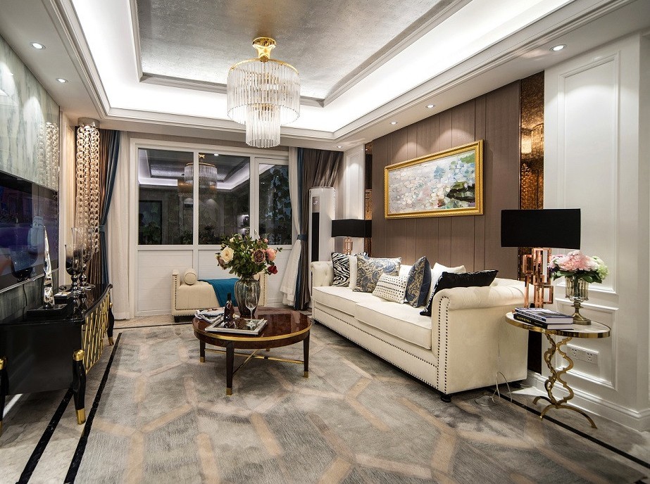 本案列此方案为三室两厅两卫,空间色调以白色和咖色为基调,蓝色和少量金色为跳色,低调中又满载奢华感,且以优雅过一生。
