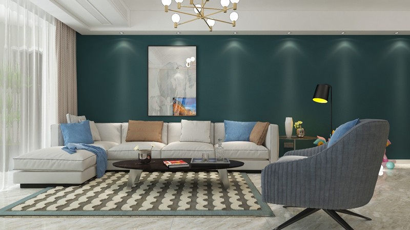 卧室艺术漆调色,油画组合增添品味