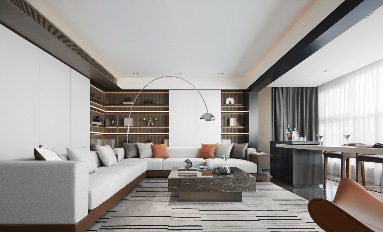 落地灯的延展形态牵引着视线跳跃,使得空间更具鲜活层次感。