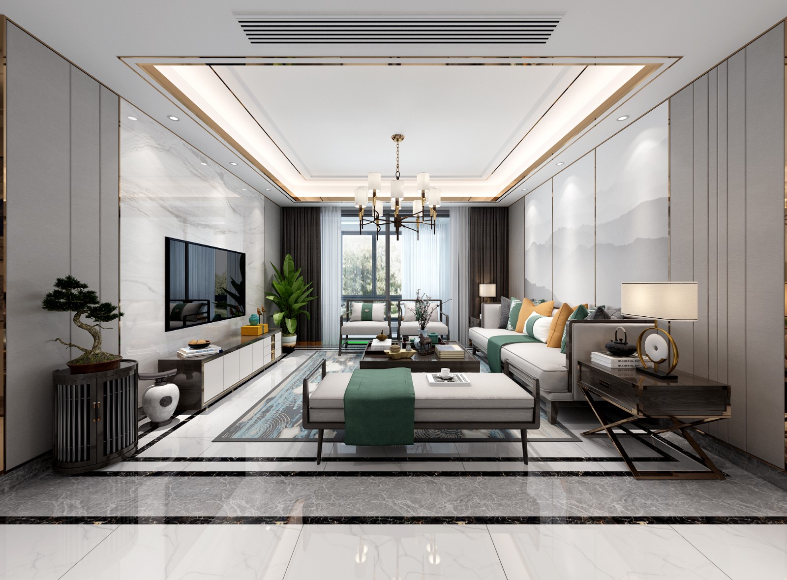 金属与石材的搭配形成的独特气场划分出小小的独立空间,通透轻盈而不失质感,利落的层次带来惹目的视觉张力,一抹仿若来自森林深处的绿沁出透人心扉的清新与灵动。
