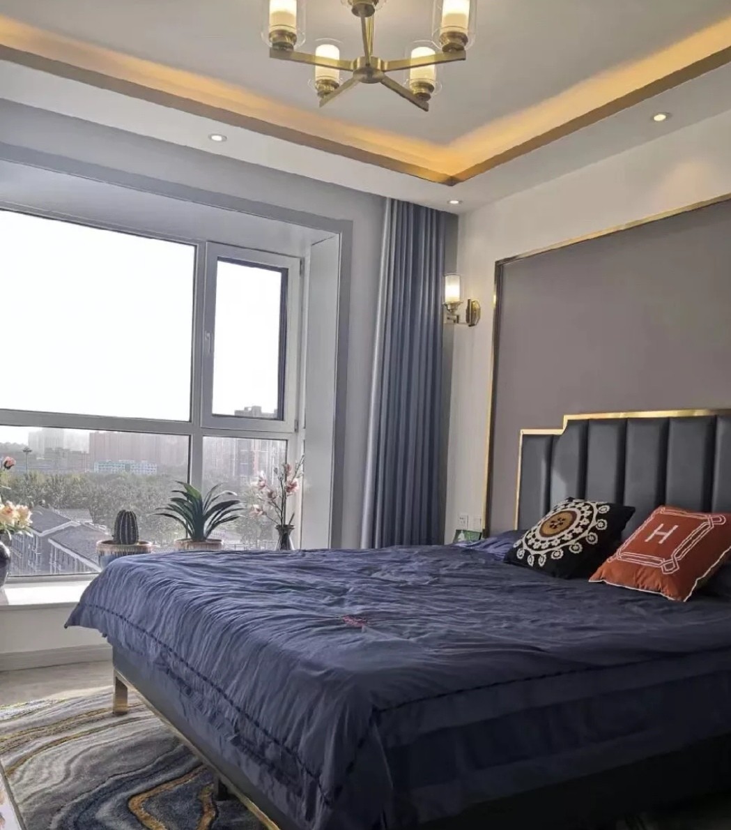 主卧飘窗及简约的床头背景墙更具空间延展性