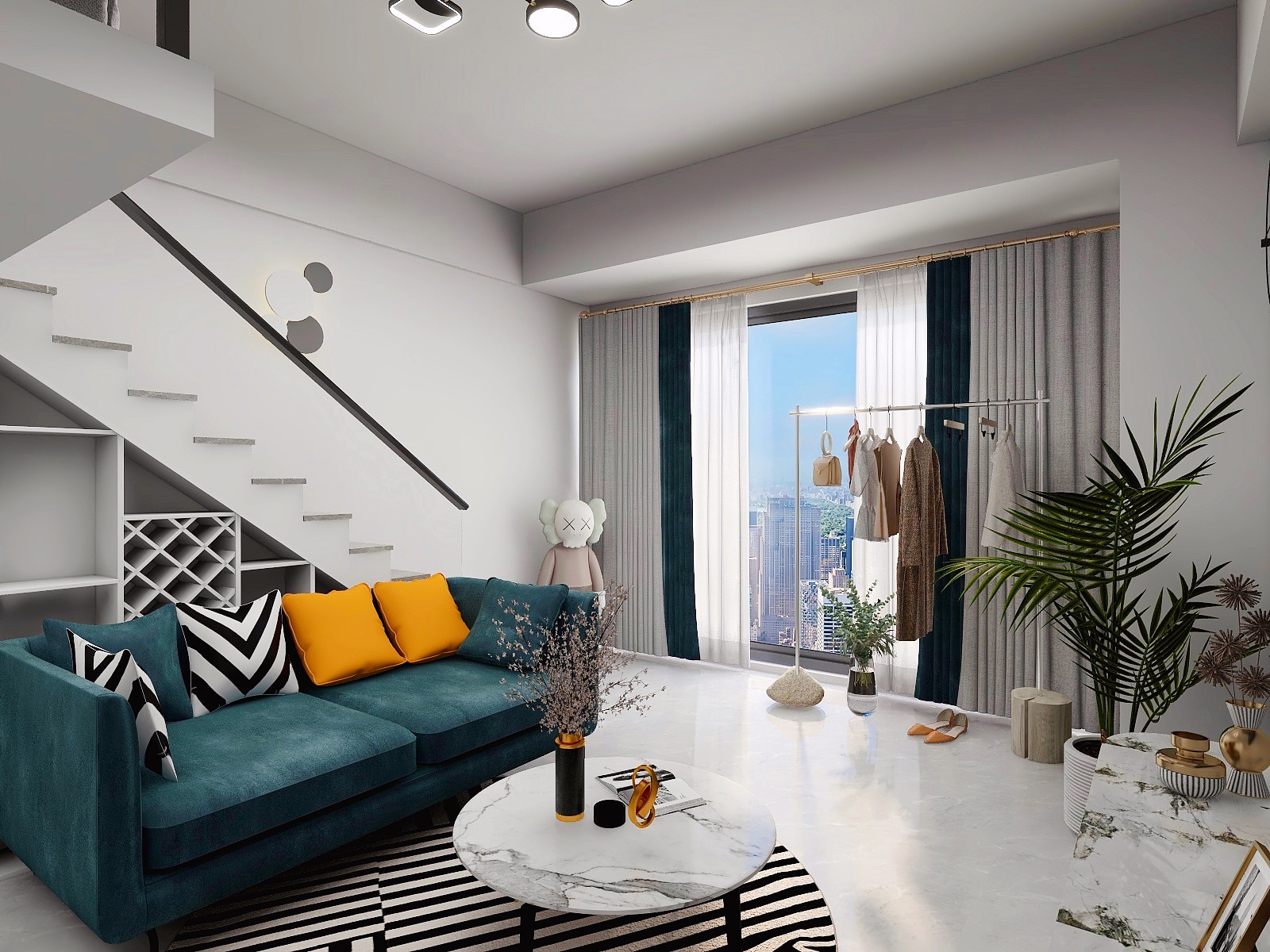 本案LOFT公寓样板间的建筑面积为47㎡,主人公设定为27岁的时尚美妆博主,喜欢电影、旅游、音乐的年轻单身女性。