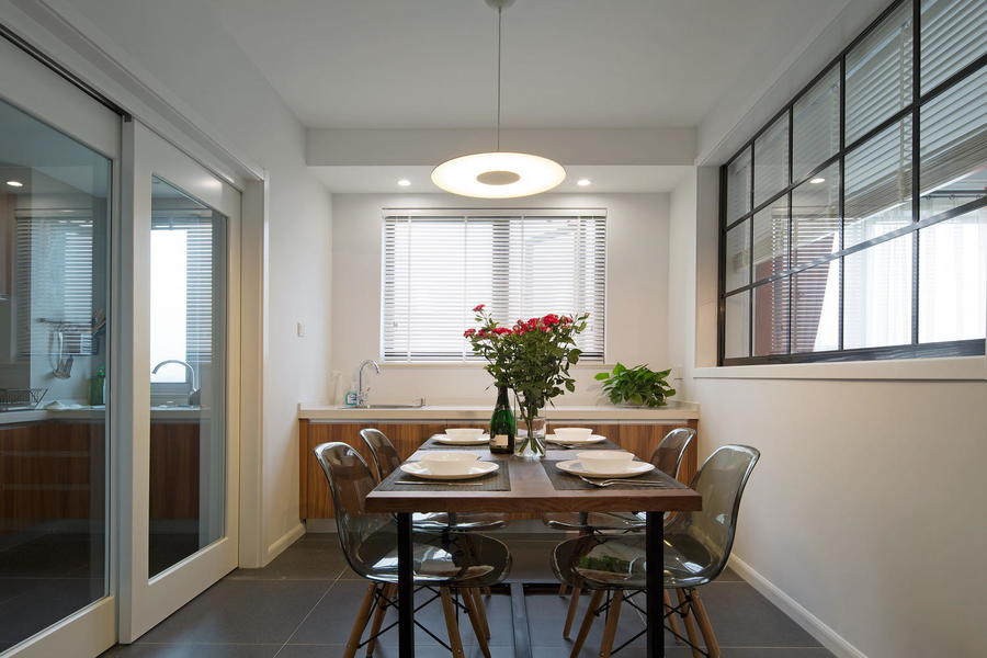 餐厅少了花哨的装饰、繁复的装饰手段和装饰材料,但还要满足实际生活中的功能需要。