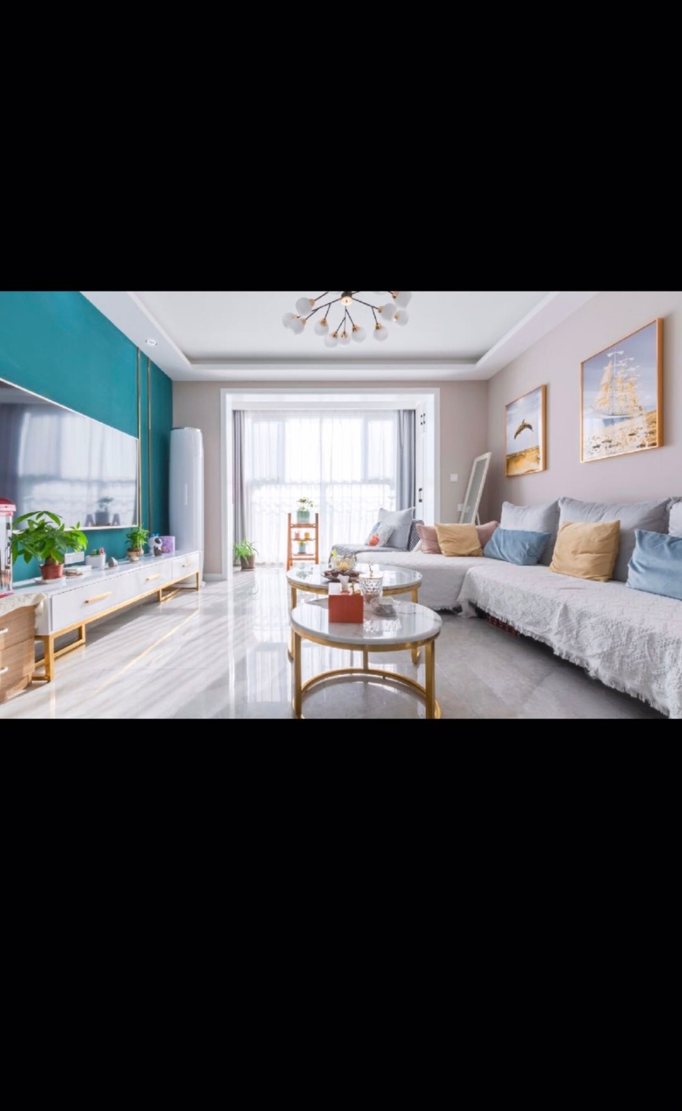 客厅里白色、淡色为主。
