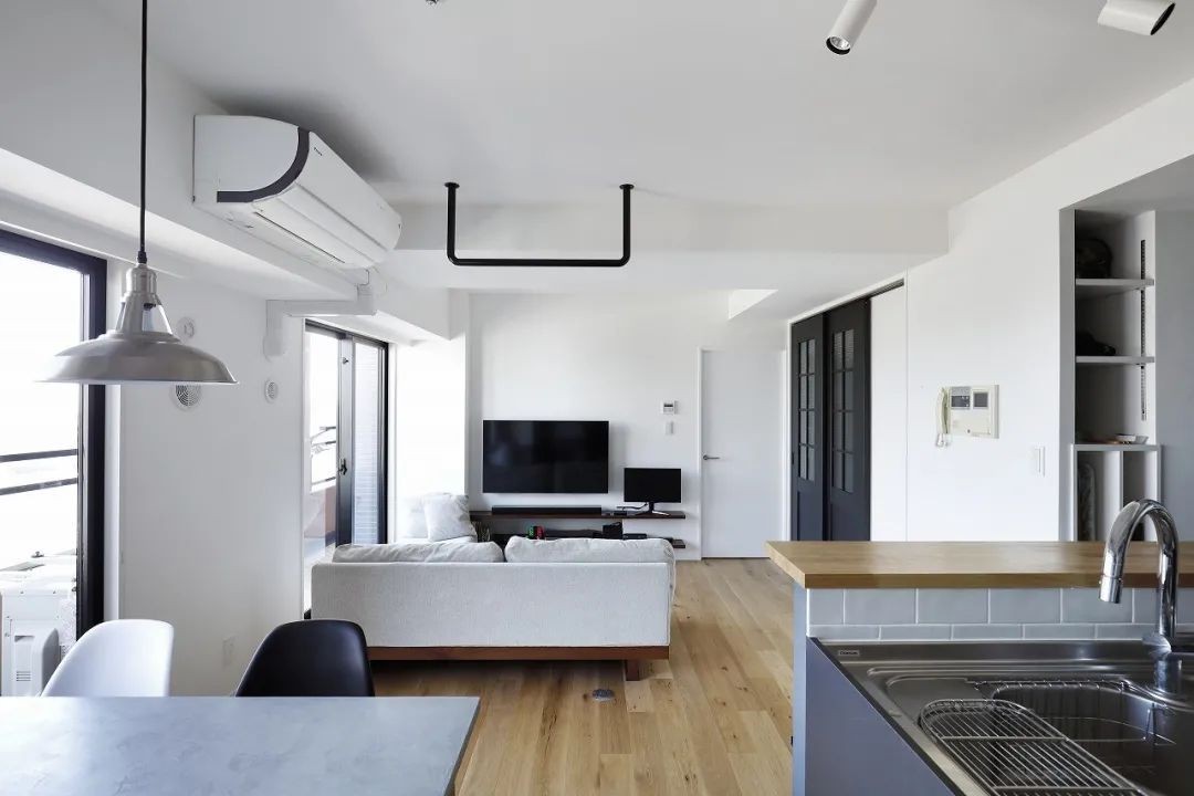 由于屋内的采光非常好,有很大的落地窗,再加上四面纯白的涂色,所以很适合做无主灯设计,到了晚上打开射灯可以给客餐厅带来完全不一样的色彩和意境