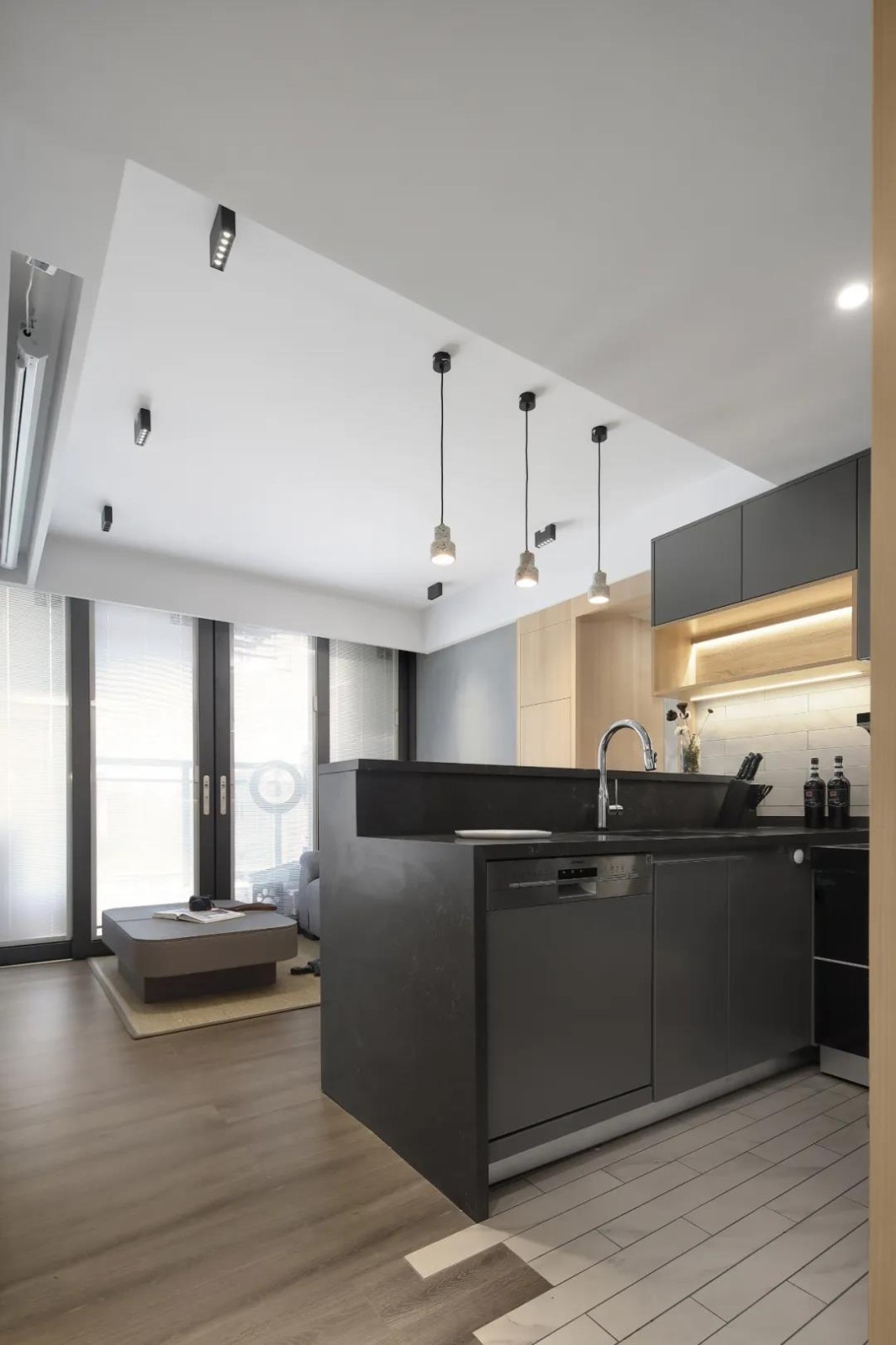 客厅的无主灯设计为空间增添时尚感。