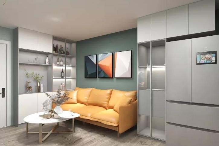 原来客厅较小,没有餐边柜储物,扩展空间后,储物功能强大