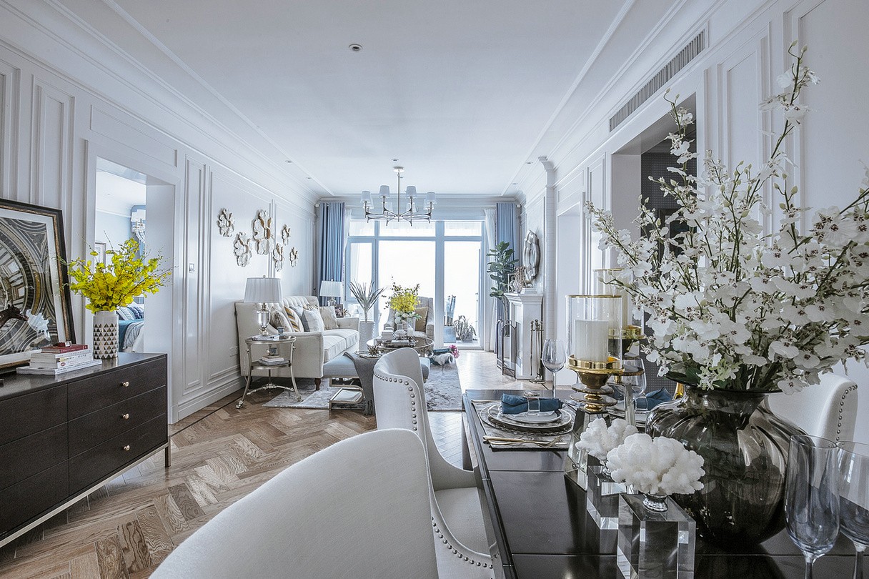 本案定义为法式,优美的线条,高雅的元素和配色,彰显出空间浓厚的浪漫气息。