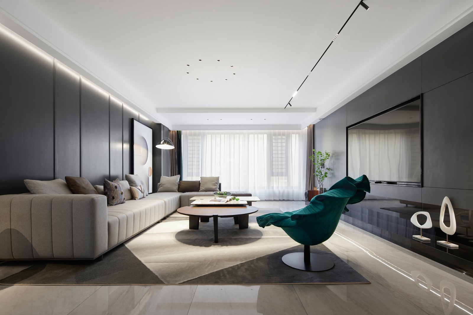 本案以现代艺术笔触,打造简约与纯粹并存之境,融入匠心,从细节中体现个性与品味,在空间中放下自我,遇见真我,让空间与人连接,与情感连接,借此缔造腔调十足的时尚质感!