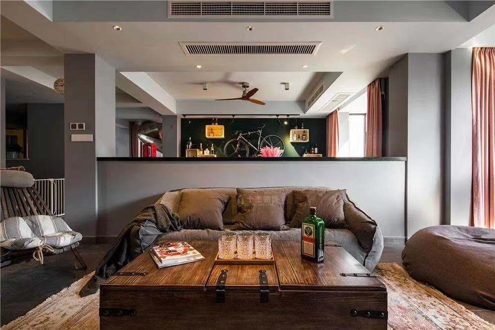 灰白基调、布艺家具、木质元素、棉麻材质等等,让整个客厅充满了现代化的工业风格,同时透露出一股神秘感。 简约舒适的球形玻璃吊椅显得十分休闲和慵懒,在某个阳光充足的午后,这将是一个非常适合休憩的好地方。