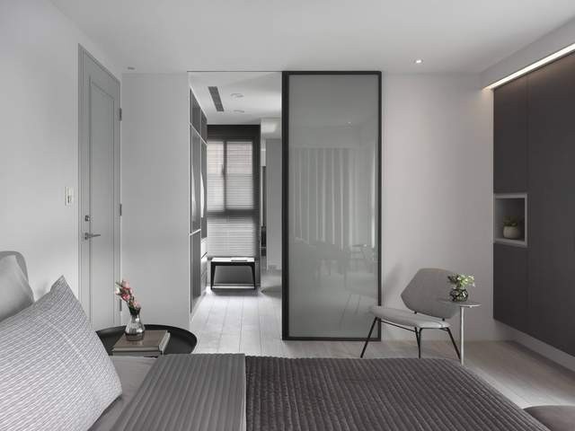 拐角处合理利用空间设计书桌点缀,搭配黑色的椅子点缀,非常的酷雅增加时尚感。