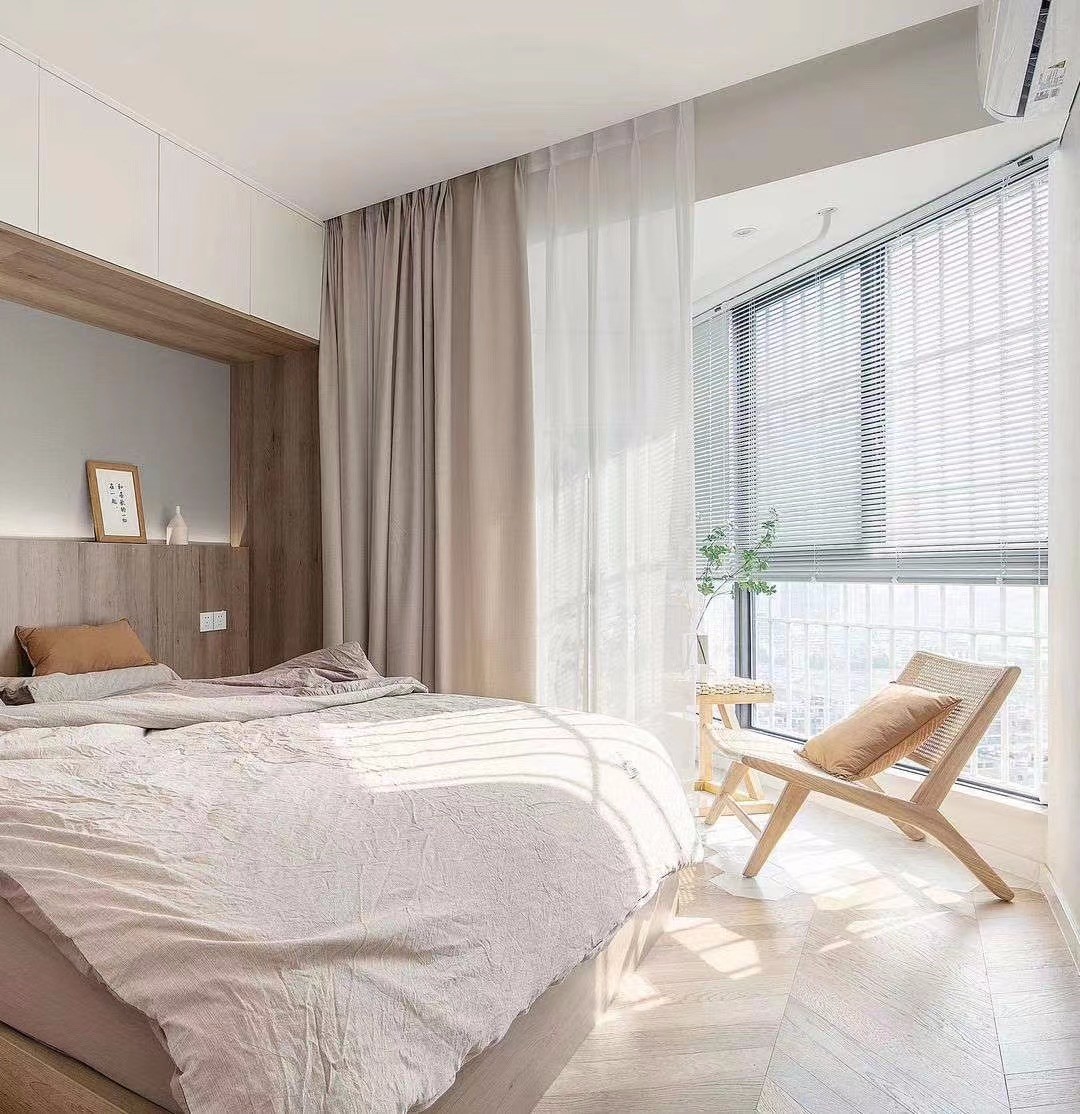 阳光大房间,家具主要以原木为设计元素,搭配白色乳胶漆,使整个空间宽敞明亮,温馨。