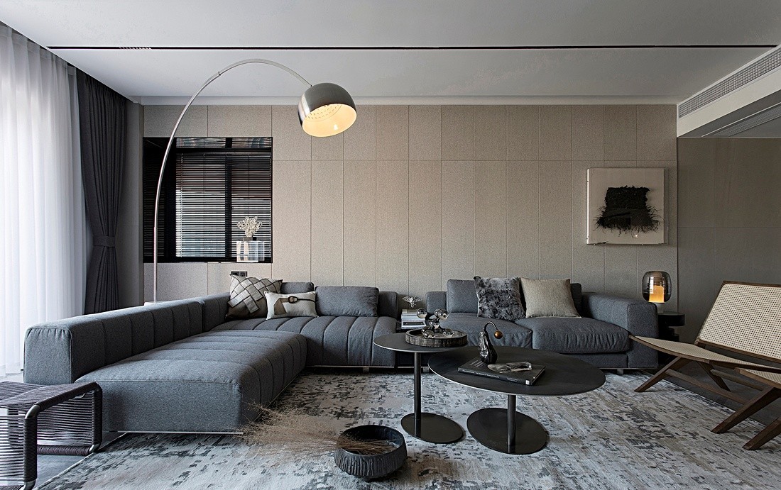 布艺与铸铁的元素碰撞创造出舒适、现代的室内空间氛围,颜色的选择上以素雅的浅灰和温润的米白呈现出大气脱俗的质感。