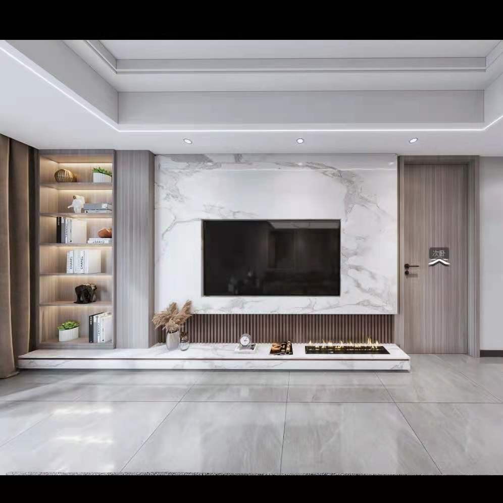 客厅以大理石为电视背景,储物柜上的小摆件给客厅添加了几分灵动