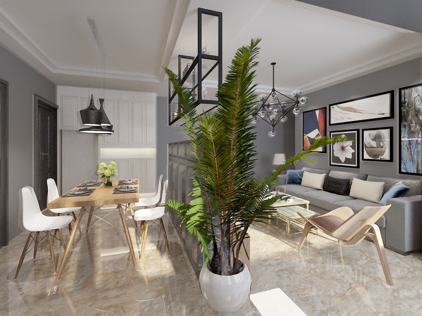 半墙之隔一面餐厅一面客厅,互不影响互不干涉,但是又不缺乏延展性