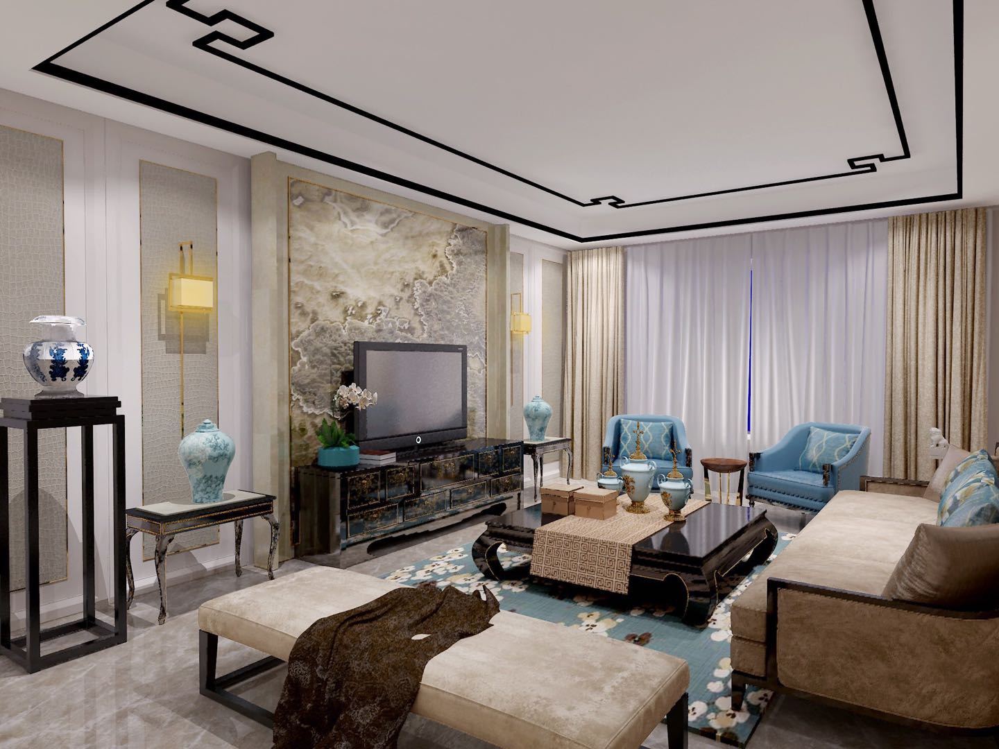 现代中式的感觉,从软装到硬装