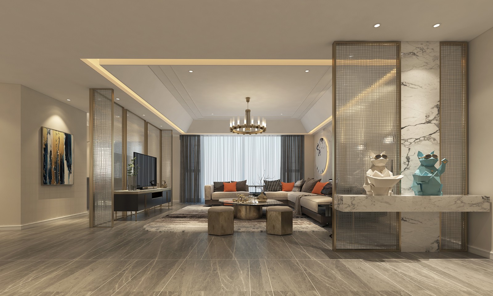 打开大门,踏进了门槛,便离开了工作、离开了城市的喧嚣。设计师彰显了国际都市豪宅的轻奢气质。将生活美好向往作为设计灵感的来源,透过材质的把控及颜色的表现在设计中还原了空间氛围和细节质感。