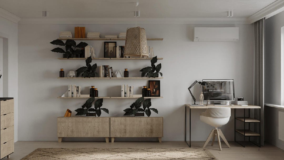 美观又实用的极简风工作区,也与客厅相呼应。