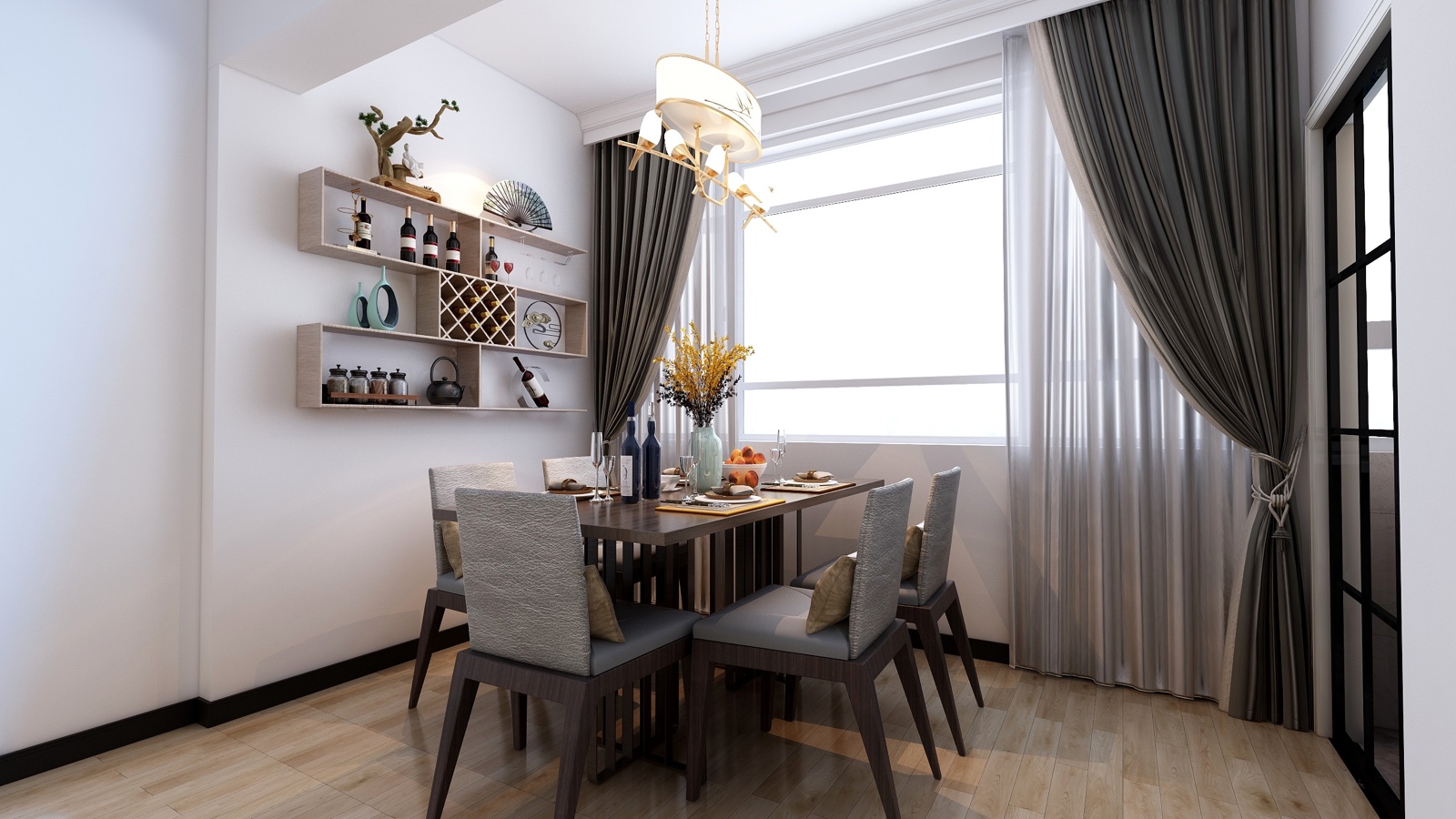 餐厅,风格以新中式为主,因是两老人,接***现代年青人的风格,所以还是以中规中矩为主,色彩以深木色为主