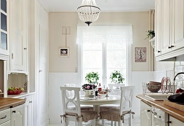房间纯白色的。让整体空间比较洁白如白雪公主的温馨房屋。