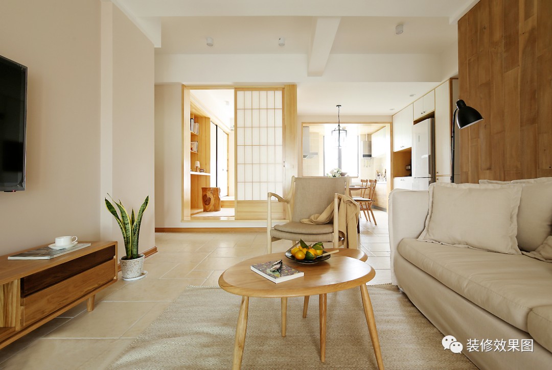 整体原木与白的搭配,清新质朴。暖暖的灯光加上温润的木质感,营造舒适宁静的家居氛围。