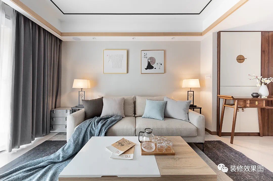 这是一套新中式风格的装修案例,在高占比的原木色与天然材质的比例协调下,空间呈现一幅淡然、自在且闲适的质朴意境。希望这套装修案例能给大家带来一些灵感。