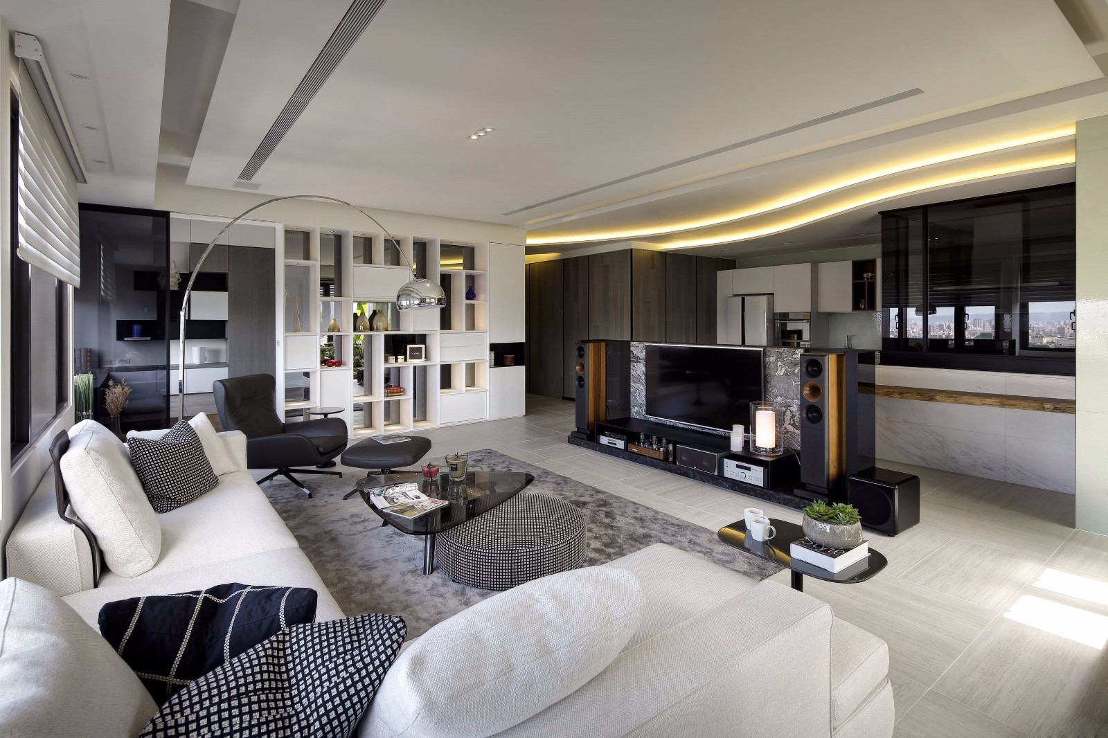 对于客厅这块考虑得最多的就是实用性,嵌入式柜体的设计