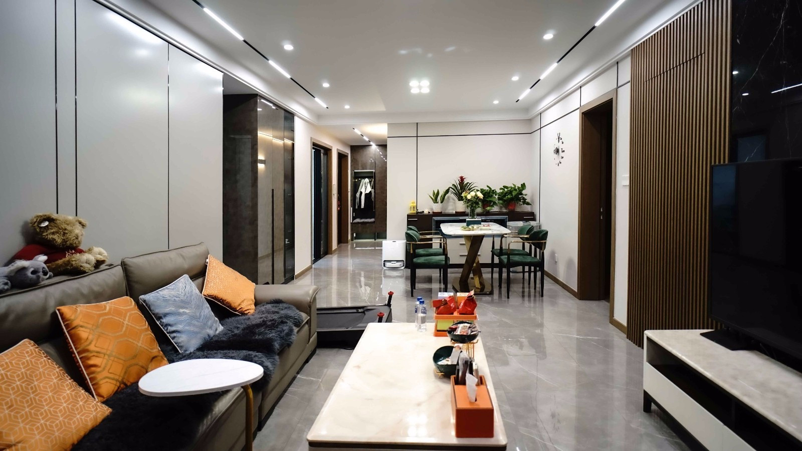 整个客厅采用无主灯设计,让客厅空间不仅只是照亮而已,更有了氛围和层次感