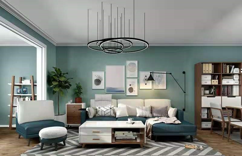 餐厅整个墙面粉了绿色,白色的吊顶和门框,木门与之形成清新的格调,让休闲或者用餐各位静谧。