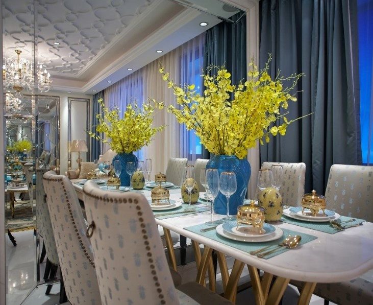 仅能容纳4-6人的餐厅,给人一种能容纳10人的错觉,这便是镜面的作用了。