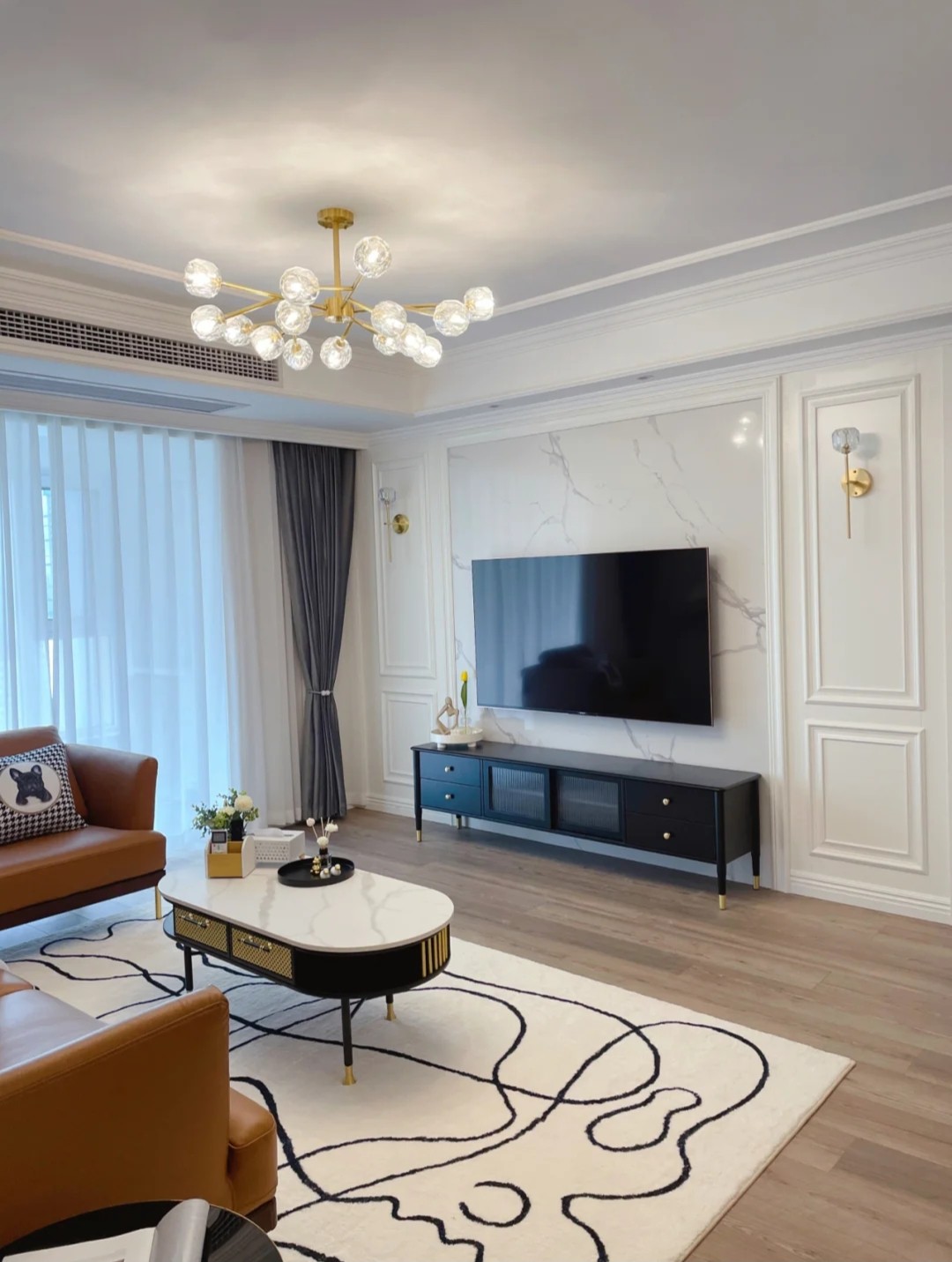 户型南北通透,采光受影响,浅色为主为宜。