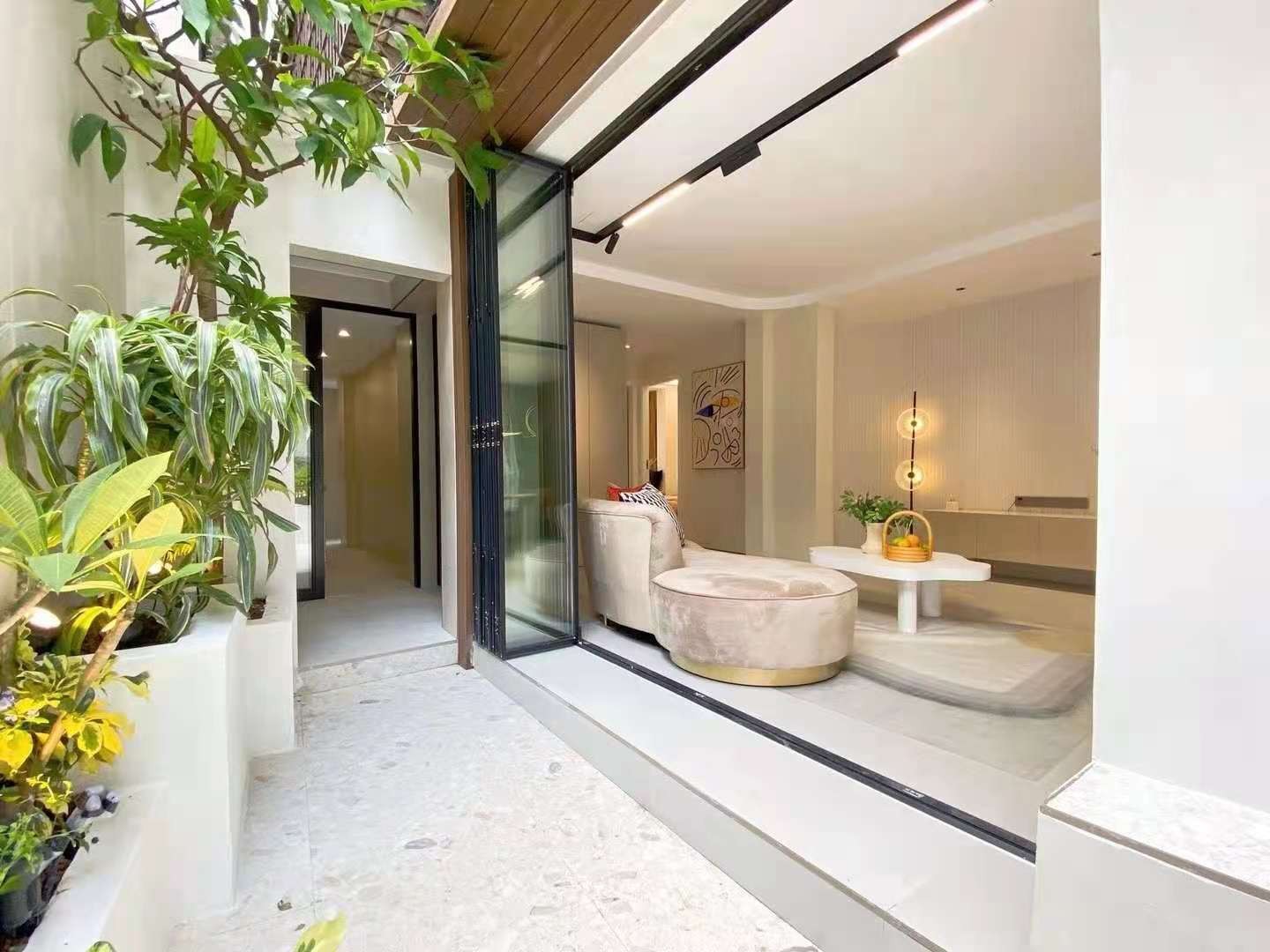 客厅与外面过道二合一,通过推拉门隔开。 以便尽可能地利用空间。视觉空间看起来很宽敞,采光效果也很好。