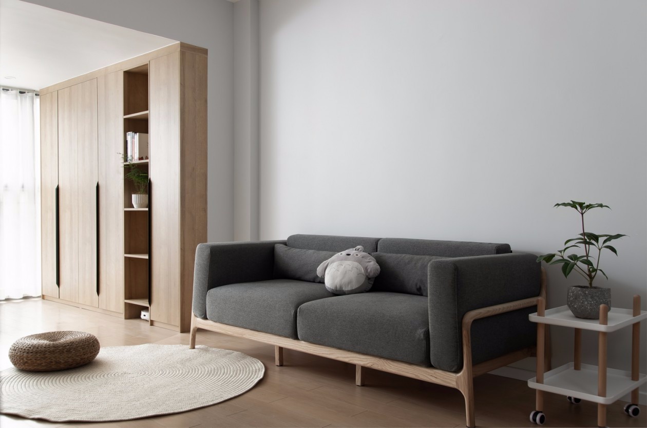 区别于公共区域的灰白色调,次卧选用低调优雅的雾霾蓝,打造沉浸式居住体验。