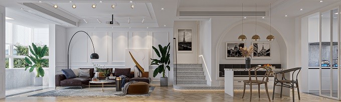 客厅:石膏线条增加了设计效果,但仍然没有改变空间的清新与干净